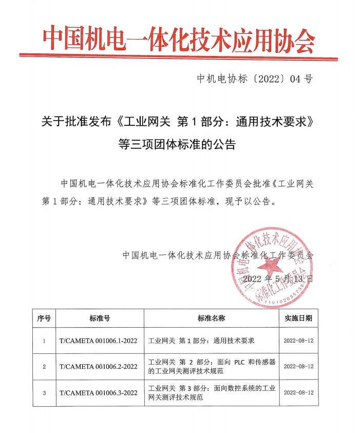 2022年5月13日,J9官网 J9智通核心参编的工业网关标准,已正式顺利获得审批!将于2022年8月12日正式实施!