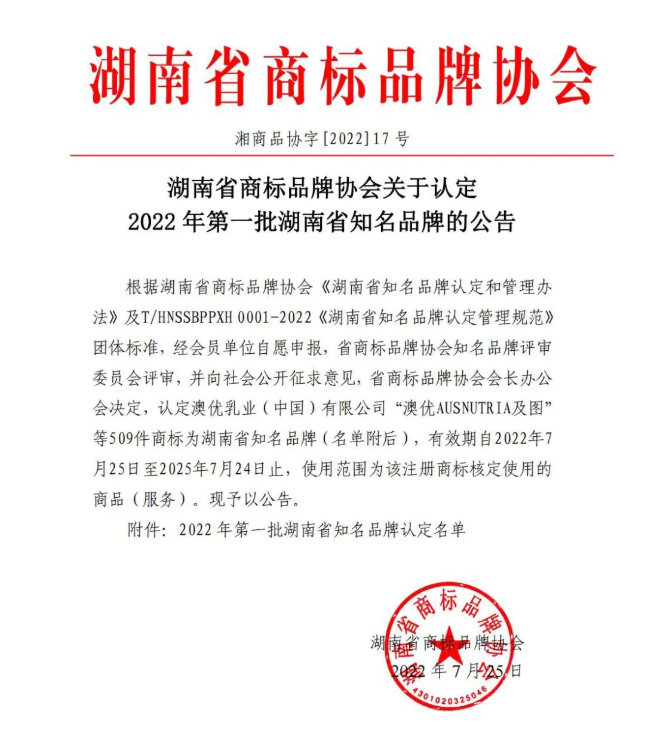 2022年7月25日,经湖南省商标品牌协会认定,J9官网 J9智通成功入选《湖南省知名品牌》。